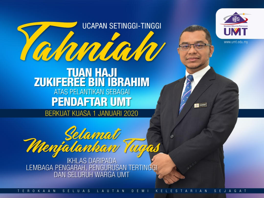 TAHNIAH Tuan Haji Zukiferee bin Ibrahim dilantik sebagai Pendaftar Baharu UMT Tahun 2020